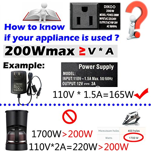 [ad_1] Note: Power-200 Watts Max, please do not use power of more than 200 watts of devices !!! 1,200 Watts Max Step Down Voltage Converter
