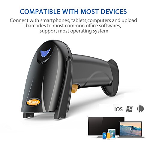 LONG DEVICE COMPATIBILITY: Connect barcode reader with mobilephones, tablets, PCs, iOS (iPhone / iPad / iPod) , MAC, Android or Windows. Support directly uploaded code entries to office software such as Word, Excel as well as Novell or QuickBooks