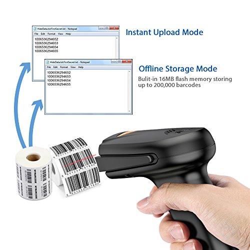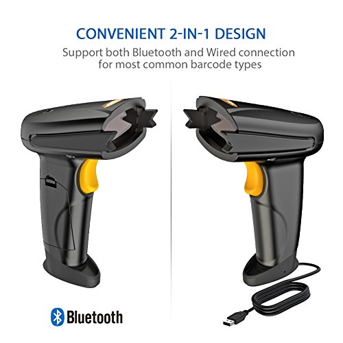 The barcode scanner offers two connection methods: wireless connection via Bluetooth, with scanning wire with the included USB cable.Install the driver automatically, no need for software or application.