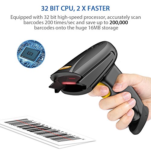 32 BIT PROCESSOR AND 16MB MEMORY: Scan continuously 200 times / sec 2 times faster than similar devices; Save up to 200,000 barcodes in the huge 16MB internal storage. Supports most types of 1D bar codes