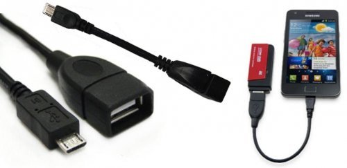 Also works with external hard drive, BUT requires ext power supply the hard disk. Micro usb b / male to usb2.0 a / female otg cable